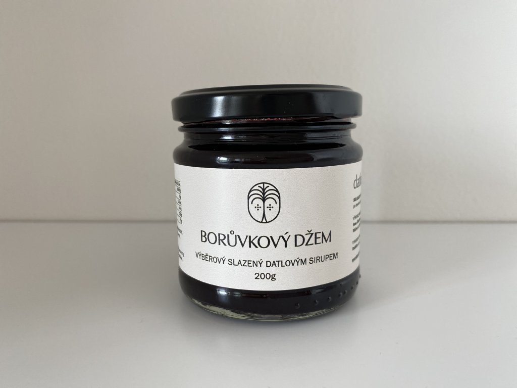 Otevřete sklenici a ponořte se do lahodného světa přírodní chuti s naším borůvkovým džemem slazeným datlovým sirupem.
