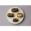 Plněné ořechy: Datle jsou jemně otevřeny a plněny kvalitními lískovými ořechy, mandlemi a pistáciemi, které dodávají kontrastní texturu a bohatou ořechovou chuť. Tato kombinace sladkosti a křupavosti vytváří nezapomenutelný zážitek.