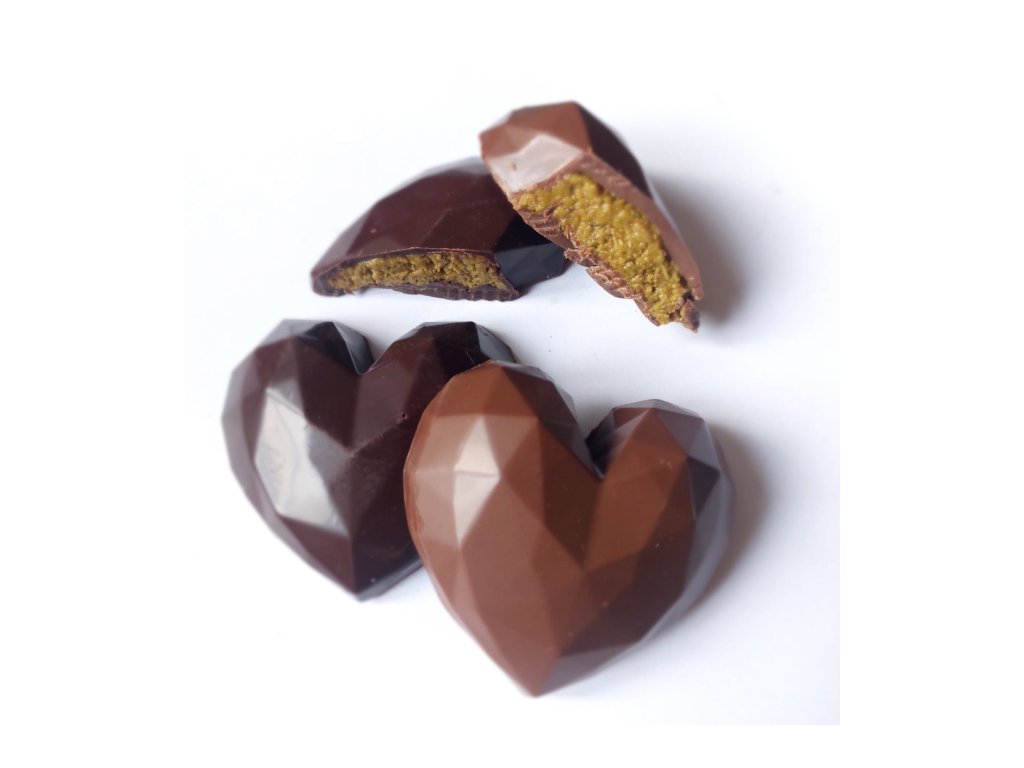 MLÉČNÉ čokoládové srdce plněné pistáciovým kréme s kadayif - dubajská čokoláda