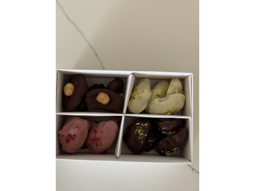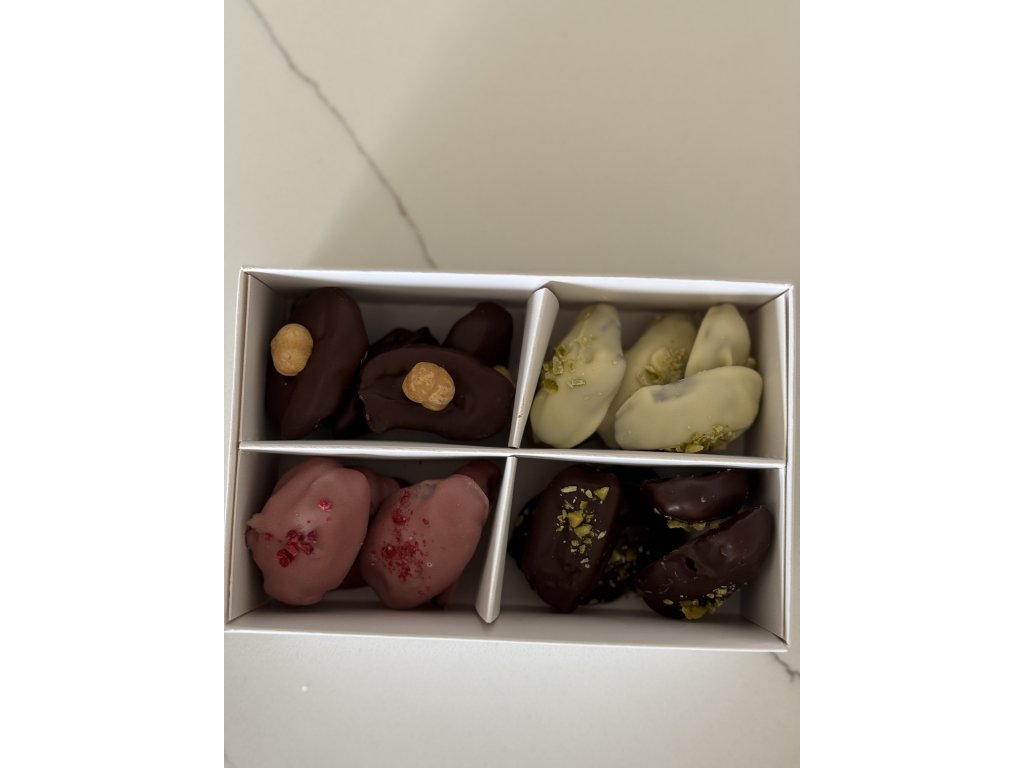 V naší krásné krabičce najdete ty nejlepší datle ručně obalené v hořké, bílé a nově i ruby čokoládě, které si po prvním ochutnání zamilujete.