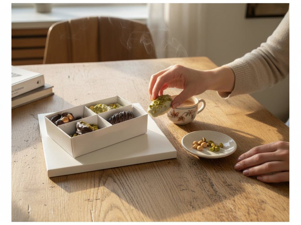 Spojení datlí, kvalitní čokolády a ořechů přináší jedinečný chuťový a estetický zážitek.